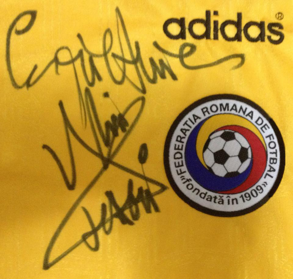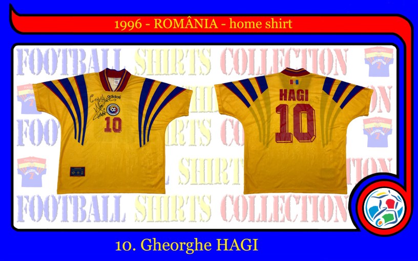 Tricou Adidas “batwing”, replică destinată suporterilor, personalizat cu numărul “Regelui” Gică Hagi, al cărui autograf îl și înfrumusețează.