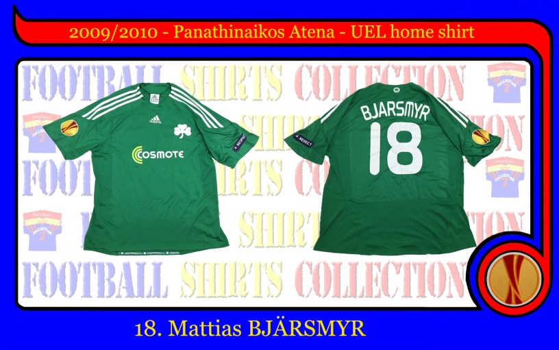 Tricou Adidas (made in Greece), model de “acasă”, cu patch-urile de “UEFA Europa League” și “Respect” pe umăr, aparținându-i lui Mattias Bjärsmyr.