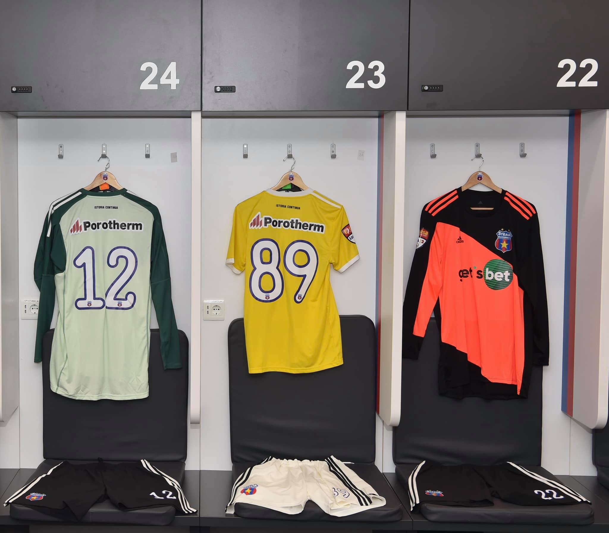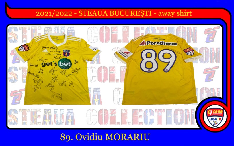 După 18 ani Steaua revine la echipamente Adidas! Model Climalite, pregătit pentru meciurile de deplasare, dar nefolosit în prima parte a sezonului, are imprimat numărul 89, al fundașului Ovidiu Morariu, sponsorii Get’s Bet (pe piept), Porotherm (pe spate, deasupra numărului) și International Alexander pe umărul stâng. Tot pe spate, deasupra sponsorului avem și inscripția “Istoria continuă”. Pe umărul drept regăsim emblema de Liga 2.