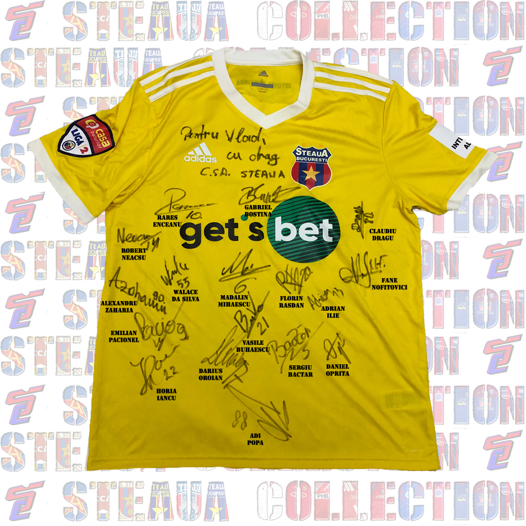 Tricoul prezintă și autografele câtorva jucători din lotul 2021-2022, prezenți la amicalul cu FCU Craiova 1948 din 26 martie 2022: Daniel Oprița, Fane Nofitovici, Gabriel Boștină, Sergiu Bactăr (5), Mădălin Mihăescu (6), Emilian Pacionel (9), Rareș Enceanu (10), Adrian Ilie (13), Robert Neacșu (14), Darius Oroian (17), Florin Răsdan (20), Vasile Buhăescu (21), Horia Iancu (22), Walace Da Silva (55), Claudiu Dragu (80), Adi Popa (88) și Alexandru Zaharia (90).