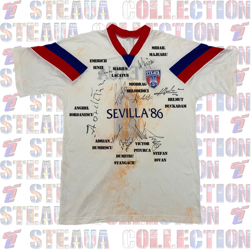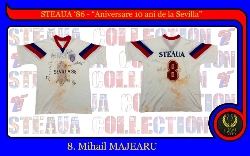 Tricou alb (referință la cele purtate în seara magică de mai din urmă cu 10 ani), cu numărul 8, purtat de Mihail Majearu în timpul meciului de la eveniment, imprimat pe piept cu Sevilla ’86. Cu ocazia aniversării a 75 de ani de la înființarea clubului și a amicalului dintre Legendele Stelei și Legendele României din 7 iunie 2022, tricoul a căpătat și autografele legendelor Emerich Ienei, Anghel Iordănescu, Helmut Duckadam, Ștefan Iovan, Miodrag Belodedici, Adrian Bumbescu, Mihail Majearu, Victor Pițurcă, Marius Lăcătuș și Dumitru Stîngaciu.