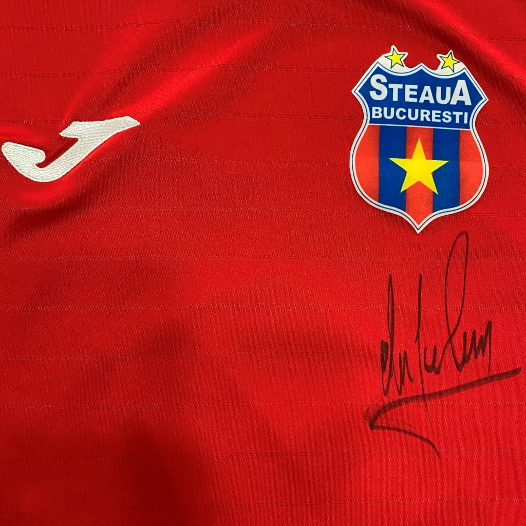Tricoul provine de la o licitație caritabilă, fiind donat de arbitrul piteștean Gigi Bălan și semnat de către legenda Stelei, Iulian Miu.