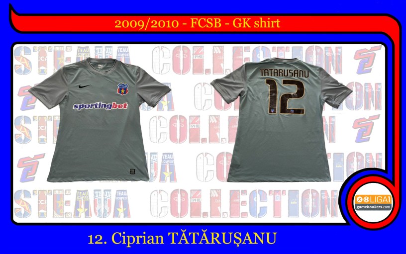 Tricou de portar Nike de joc aparținând lui Ciprian Tătărușanu. Prezintă pe piept sponsorul SportingBet. Model gri folosit în următoarele partide: