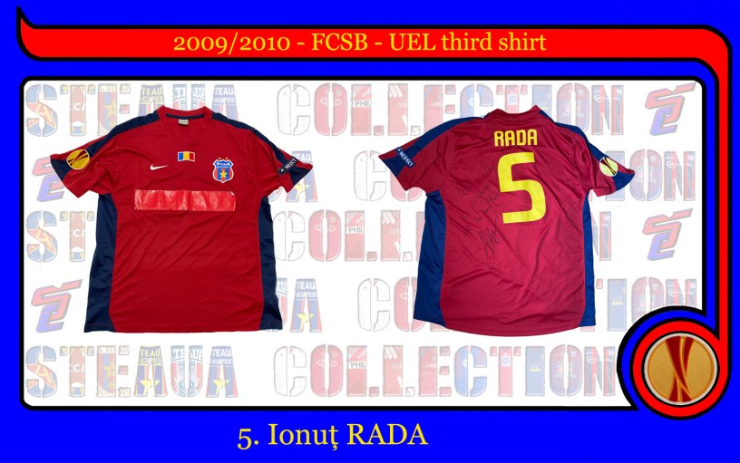 Tricou Nike de joc purtat în meciul din grupele Europa League dintre Fenerbahçe Istanbul 3-1 Fotbal Club Fcsb (5 noiembrie 2009) și schimbat la finalul jocului cu brazilianul Wederson, din a cărui colecție provine via un colecționar turc. Ca și caracteristică specială, sponsorul SportingBet de pe piept a fost acoperit cu o bandă roșie deoarece în Turcia erau interzise casele de pariuri. Tricoul are brodat tricolorul României, iar pe umeri patch-urile UEL și Respect.