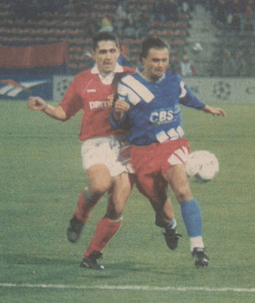 Sezonul 1994-1995 îi aduce Stelei al treilea titlu consecutiv și o participare în premieră în grupele UEFA Champions League, după ce o elimină pe Servette Geneva în turul preliminar. Deși obține 3 egaluri (0-0 și 1-1 cu Anderlecht Bruxelles, 1-1 cu Benfica Lisabona) și învinge în ultima etapă cu 4-1 pe Hajduk Split, nu reușește să se claseze pe unul din primele două locuri din grupă.